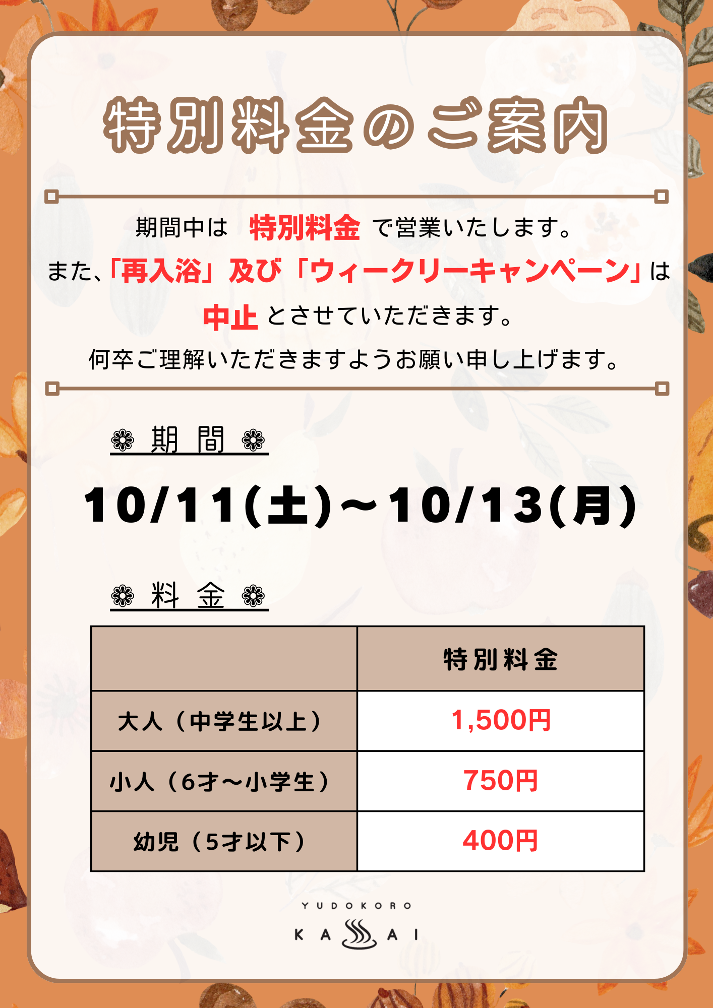 🍂 10/11~13 特別料金のお知らせ 🍂